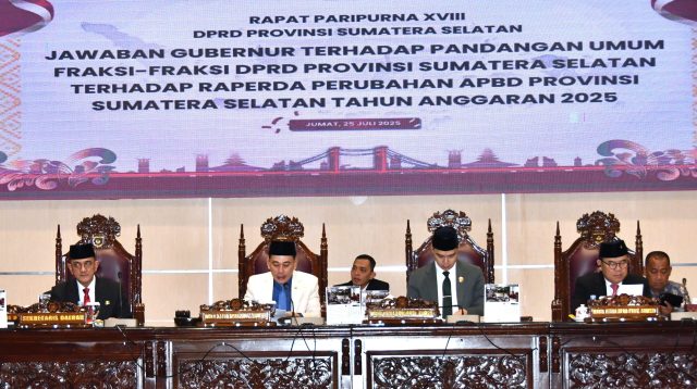 DPRD Prov. Sumsel Dengarkan Penjelasan Gubernur Terhadap Raperda Perubahan APBD Prov.Sumsel TA 2025