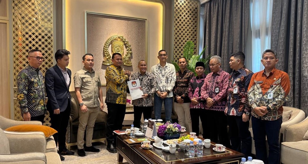 Pimpinan DPRD Provinsi Sumatera Selatan yang terdiri dari Ketua DPRD Andi Dinialdie, SE, Wakil Ketua DPRD Raden Gempita, SH, dan Wakil Ketua H. Nopianto, S.Sos, MM, beserta Anggota Sri Mulyadi, SE, M.Si, menerima kunjungan jajaran Komisi Pemilihan Umum (KPU) Provinsi Sumatera Selatan. Kunjungan tersebut dalam rangka penyampaian Surat Keputusan Penetapan Pasangan Calon Gubernur dan Wakil Gubernur Terpilih Provinsi Sumatera Selatan Tahun 2024.