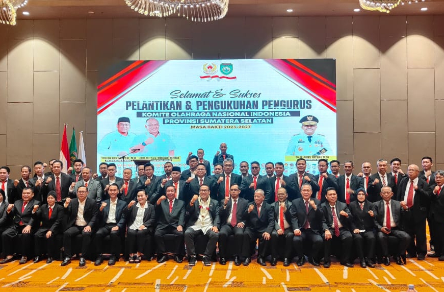 Palembang, sangsakanewss.com/.– Pelantikan dan pengukuhan pengurus Komite Olahraga Nasional Indonesia (KONI) Sumsel masa bakti 2023-2027 yang diselenggarakan di ballroom hotel Novotel Palembang, Kamis (21/12/2023).