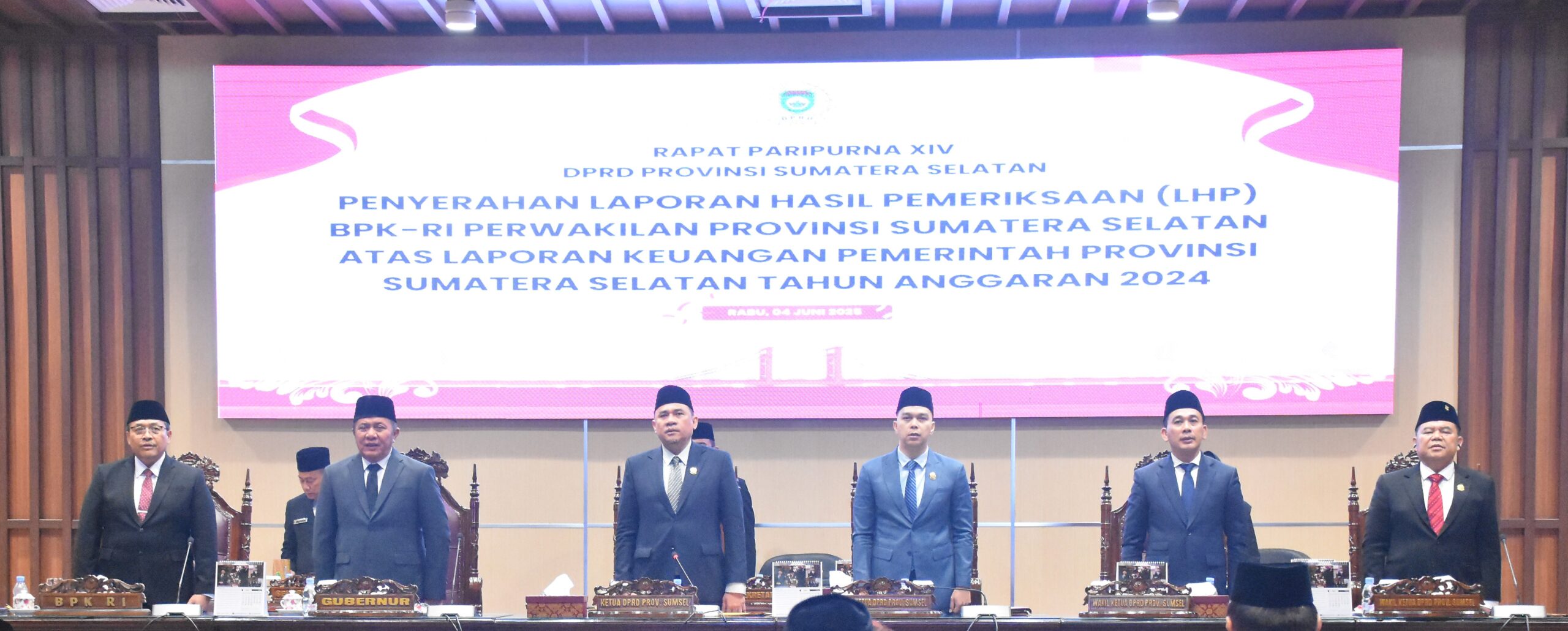 Sumatera Selatan menerina Predikat Wajar Tanpa Pengecualian (WTP) yang ke 11 kalinya secara berturut-turut dari tahun 2014 hingga sekarang, hal tersebut disampaikan oleh Direktur Jendral Pemeriksa Keuangan Negara I BPK RI; Sarjono, SE.Ak, MBA, CA, CSFA dalam sambutannya pada Rapat Paripurna DPRD Prov.Sumsel ke XIV dengan agenda penyerahan Laporan Hasil Pemeriksaan (LHP) Badan Pemeriksa Kuangan Republik Indonesia (BPK-RI) Perwakilan Sumatera Selatan atas laporan keuangan pemerintah daerah Prov.Sumsel Tahun Anggaran (TA) 2024, Rabu 04-06-2025.